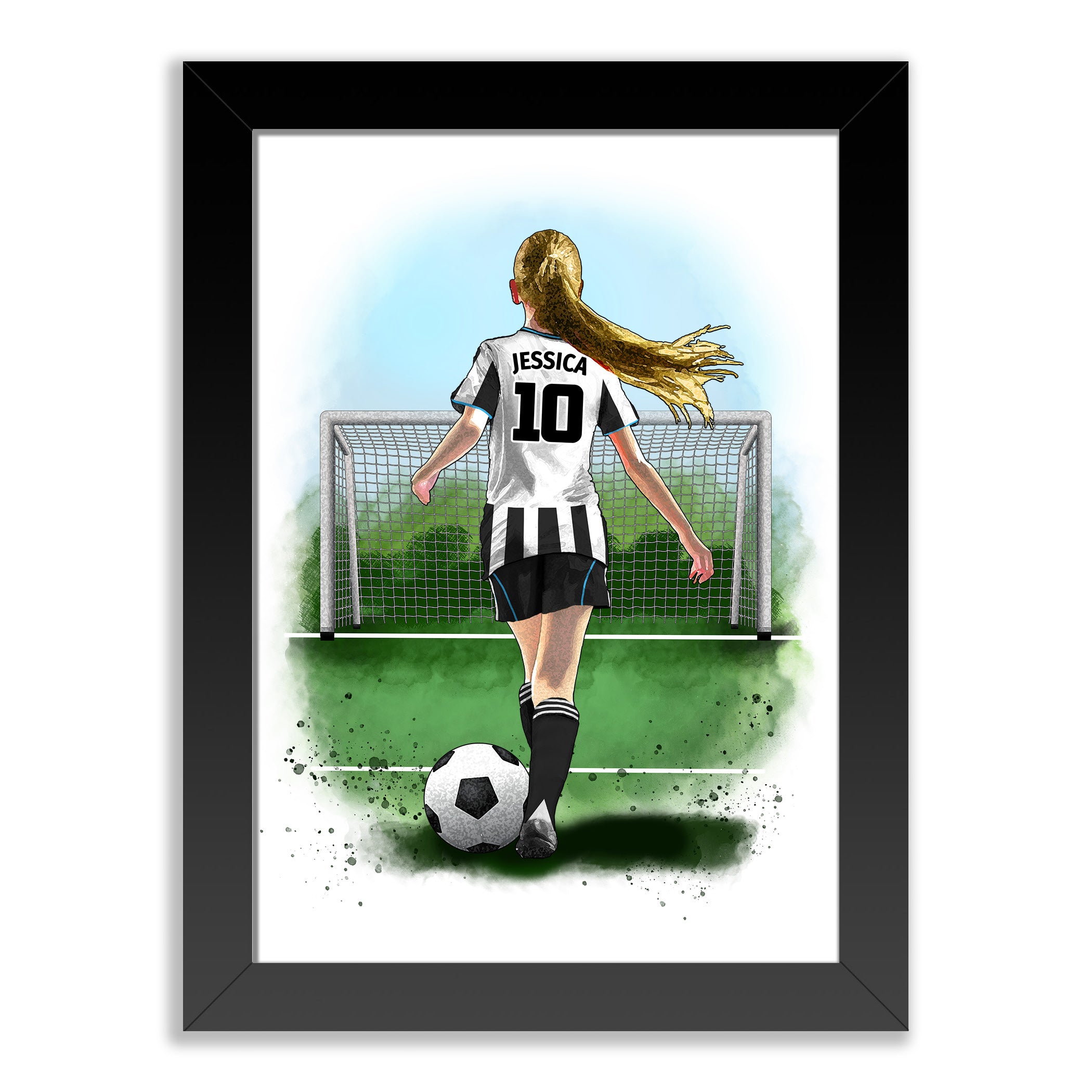 Personalised Newcastle Football Art Print for Girls - Custom Portrait Gift